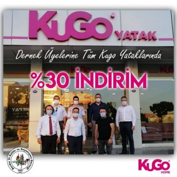 Yönetim Kurulu olarak, KUGO yatakları sahibi hemşehrimiz Mehmet ÖZMEN' i Karabağlar' da bulunan mağazasında ziyaret ettik. Yaptığımız protokol kapsamında; dernek üyelerimizin tüm KUGO Mağazalarından yapacakları yatak Net %30 İNDİRİM uygulanacaktır. Hemşehrimize ilgi, alaka ve desteklerinden dolayı teşekkür eder, hayırlı işler dileriz..
